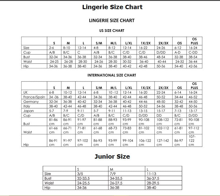 Scalloped lace and mesh babydoll with underwire cups, keyhole front, adjustable straps and hook and eye back closure. Babydoll has a double layer of mesh. Matching g-string included.
